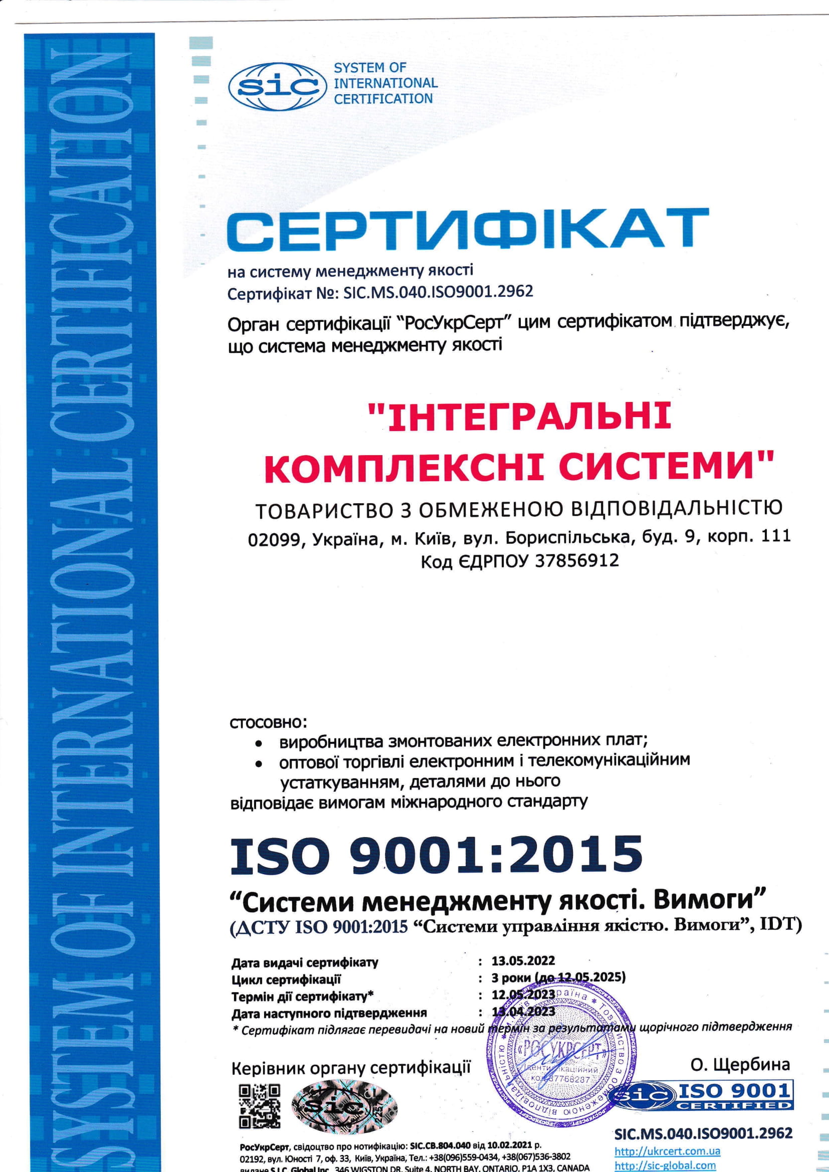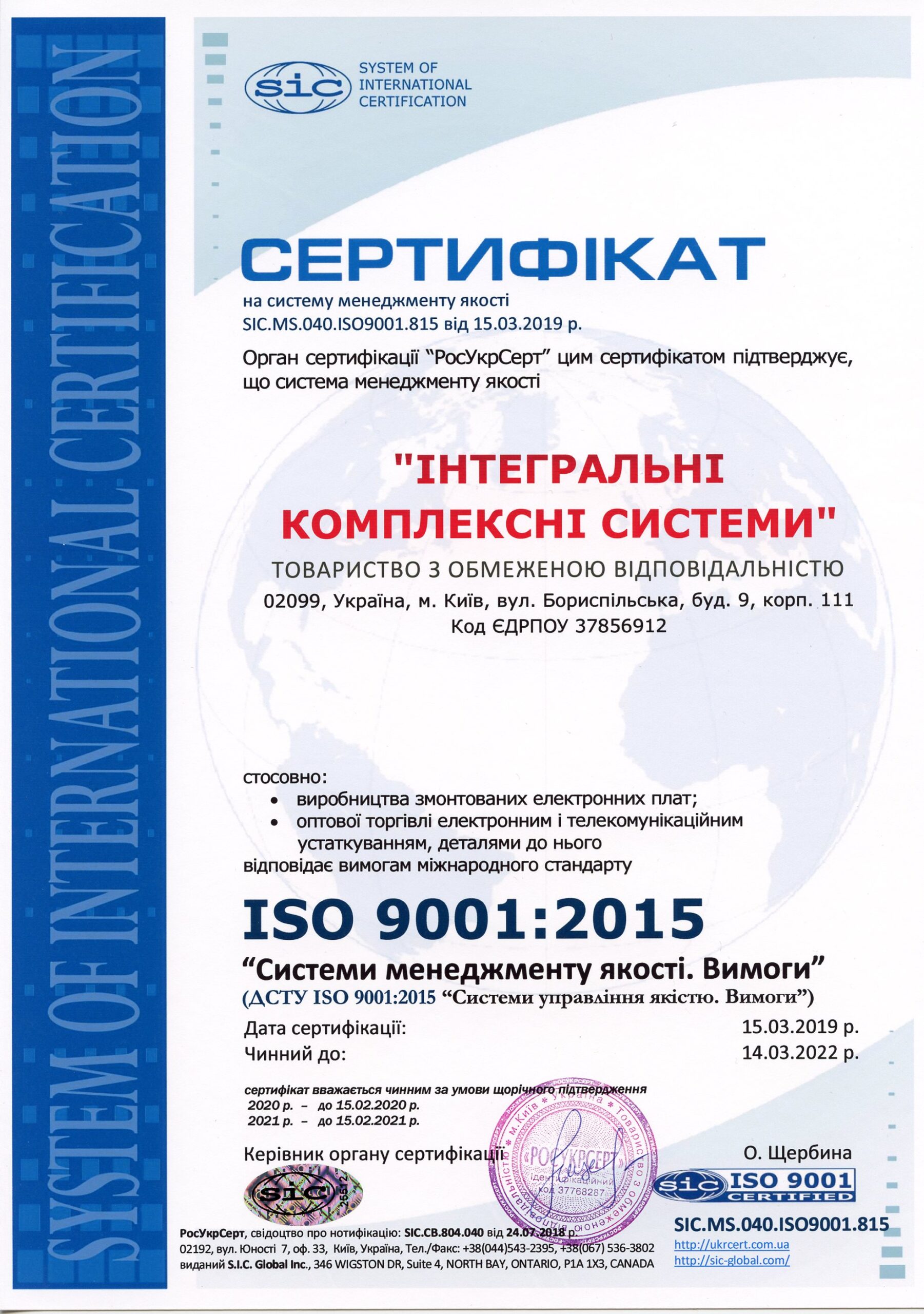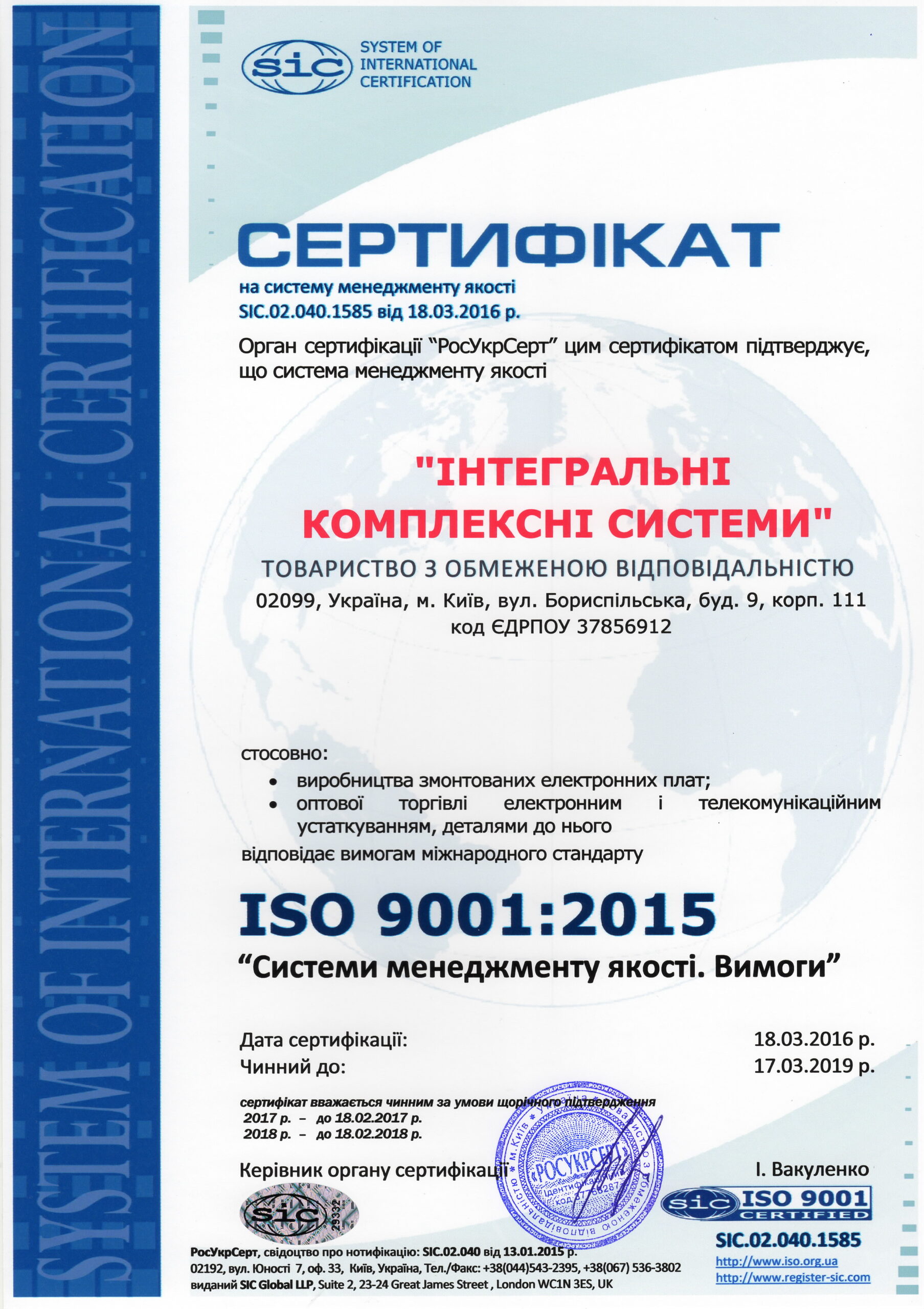 “Integral Complex Systems” company successfully passed the quality management system certification to ISO 9001:2015 – SIC.02.040.1585